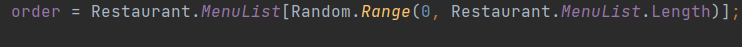 When the game begins the customer will choose a order out of a menu list that I created in another script. The customer will choose randomly which order he'd want to have, I made it so that when the game begins the order is equal to the restaurant menu list. Then it will choose between 0 being the first item on that list, to the last item on that list which is the restaurant menu list length.